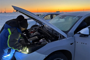 冬天的黑河,当大多数人还在温暖的被窝里酣眠时,腾博汇游戏官网大通冬测团队的车灯已刺破茫茫雪夜,照亮了冰封的测试场地。20余辆测试车一字排开,井然有序地开始准备冷启动。